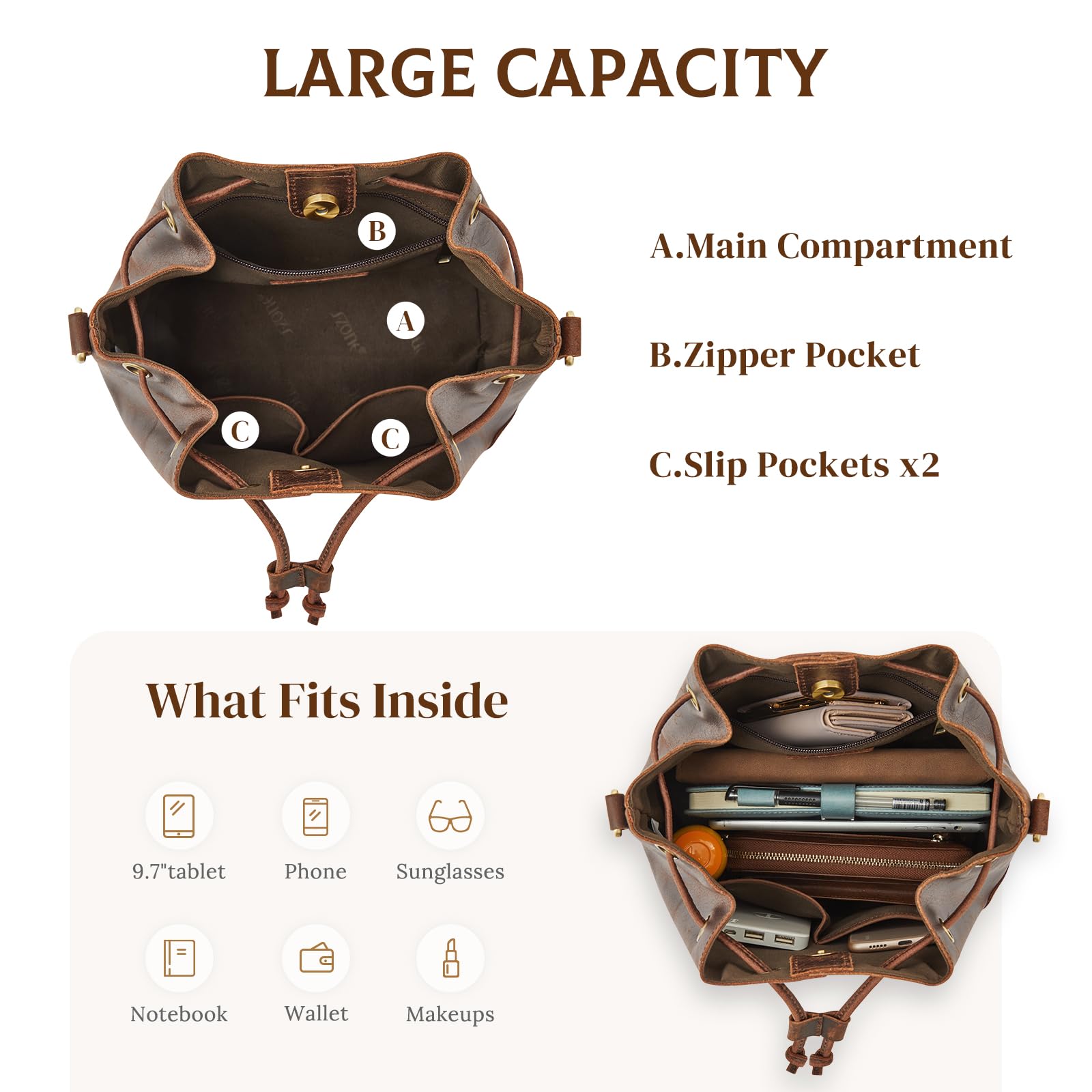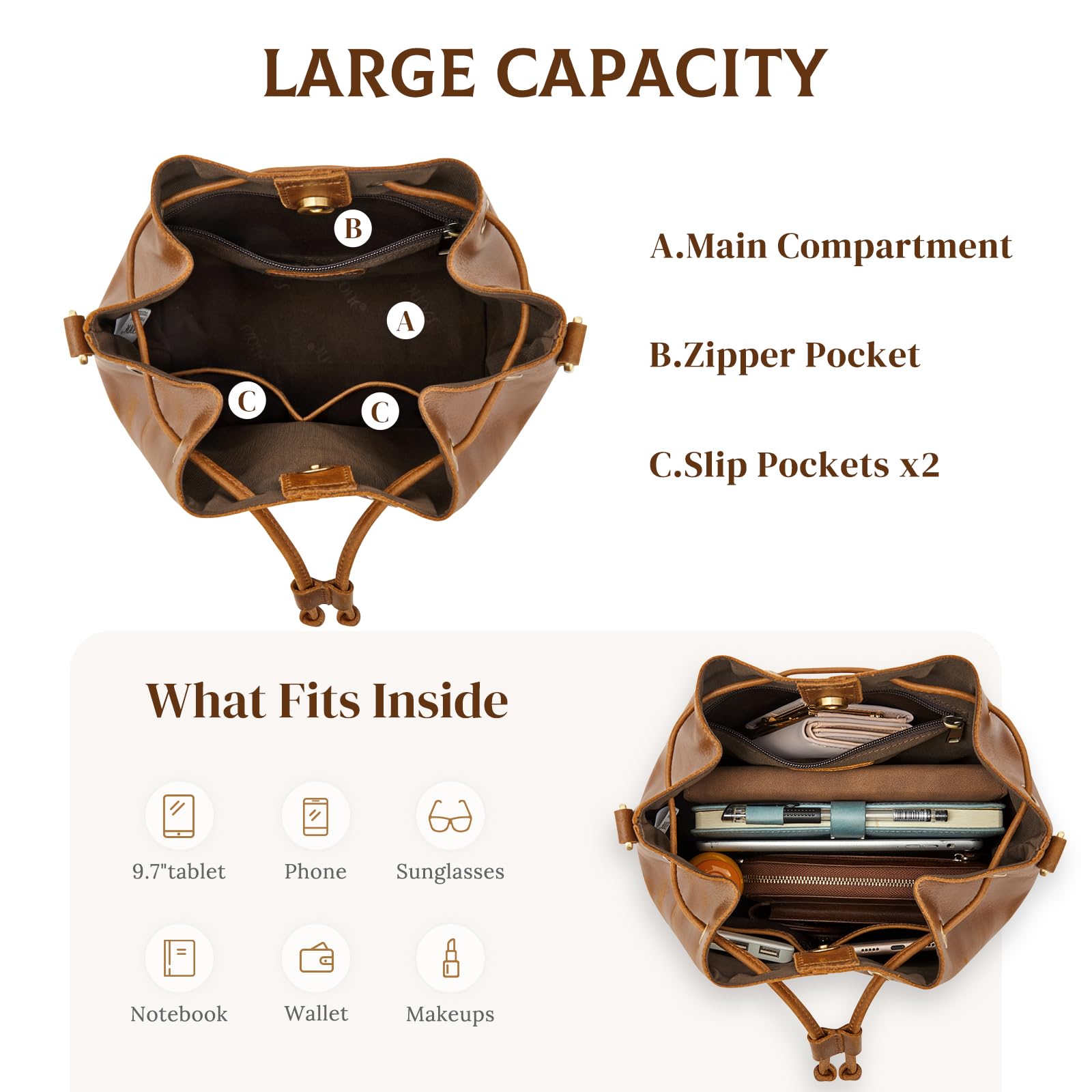 S-ZONE Luxe Leather Drawstring Bucket Bag