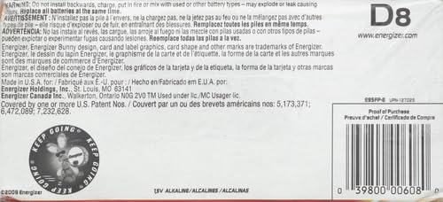Keep your devices powered and running for longer with Energizer D Batteries. These premium alkaline batteries are designed to provide reliable and long-lasting performance. This pack contains 8 D cell batteries, making it a convenient and economical choice for your everyday needs.