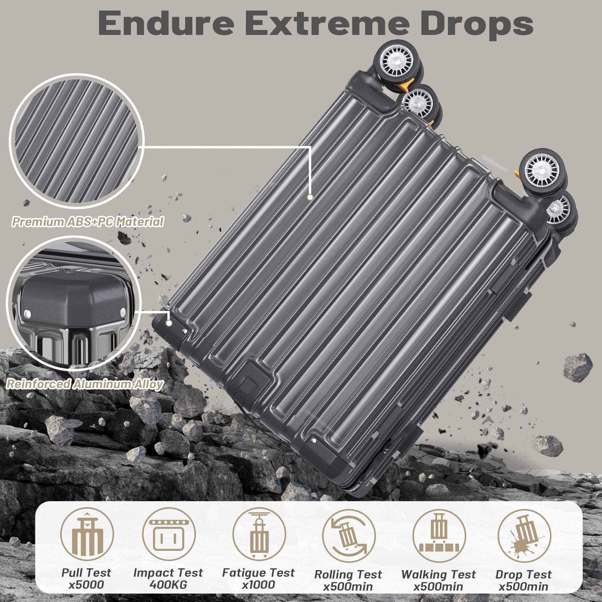 Crafted from a premium ABS+PC material, these hardside suitcases offer exceptional strength and resilience while remaining remarkably lightweight. Navigate with ease using the smooth double spinner wheels, ensuring 360-degree mobility and stability on any terrain.