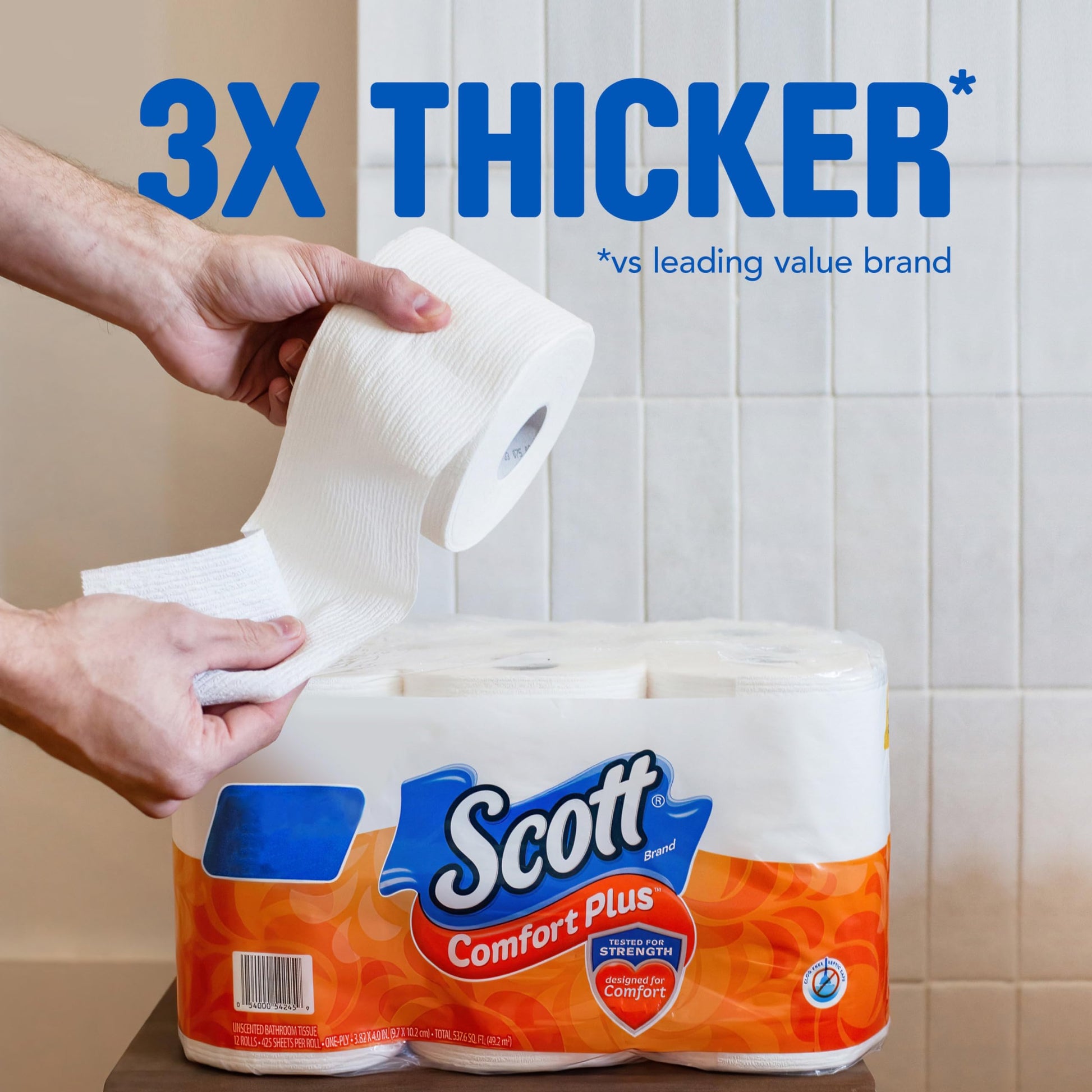 Experience superior comfort and reliability with Scott ComfortPlus Toilet Paper, designed to provide you and your family with the ultimate bathroom experience. Each pack contains 12 double rolls, ensuring you have ample supply to meet your household needs.