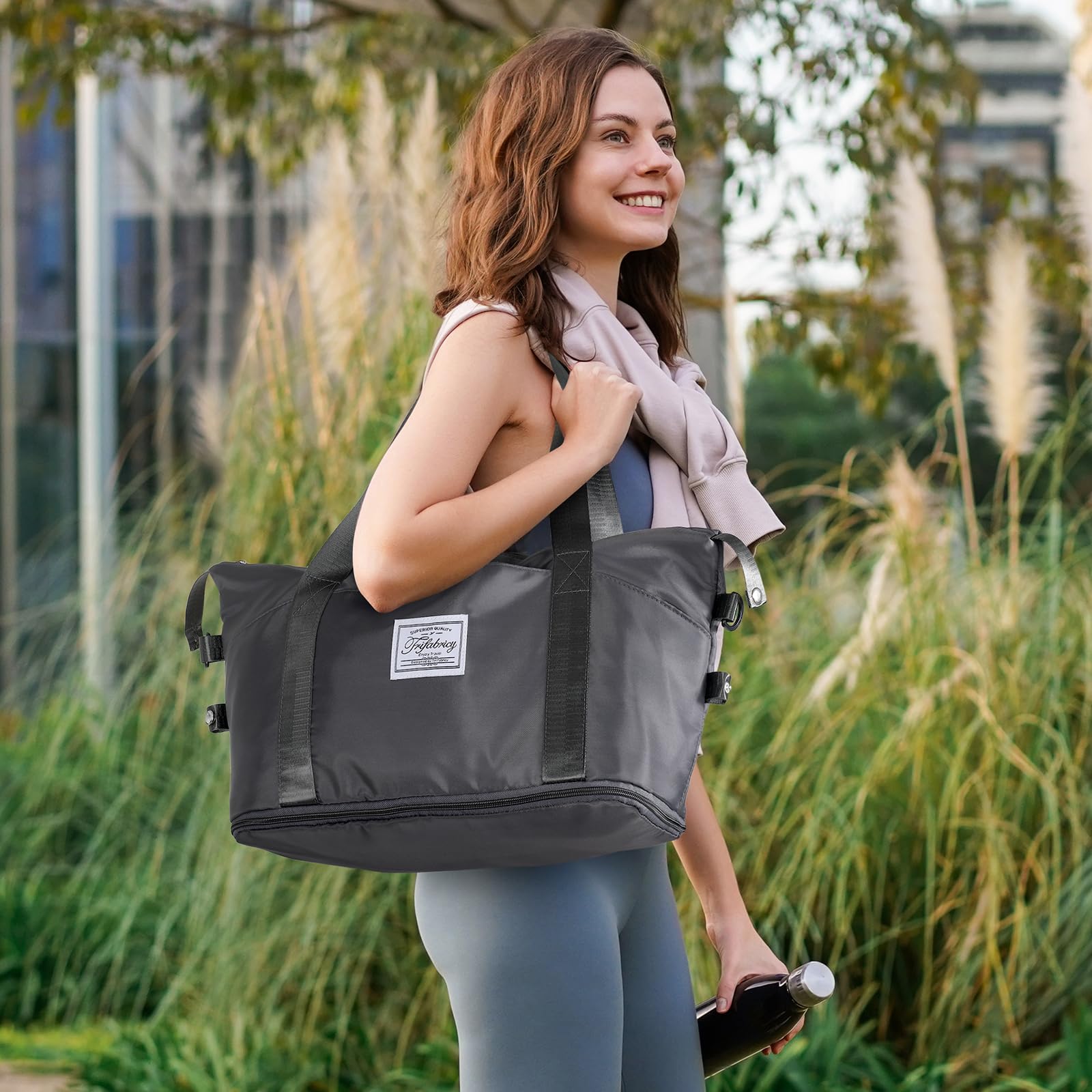 Make your travels more convenient and stylish with our large shoulder weekender overnight bag. The perfect carry on bag for all your short trips, this duffel bag is designed with a spacious main compartment and various pockets to keep your belongings organized. The waterproof material and expandable design make it a reliable choice for any kind of travel, while the trolley sleeve allows you to easily attach it to your luggage for hands-free transport. And with its eye-catching pink color, you'll never have trouble spotting your bag on the luggage carousel.