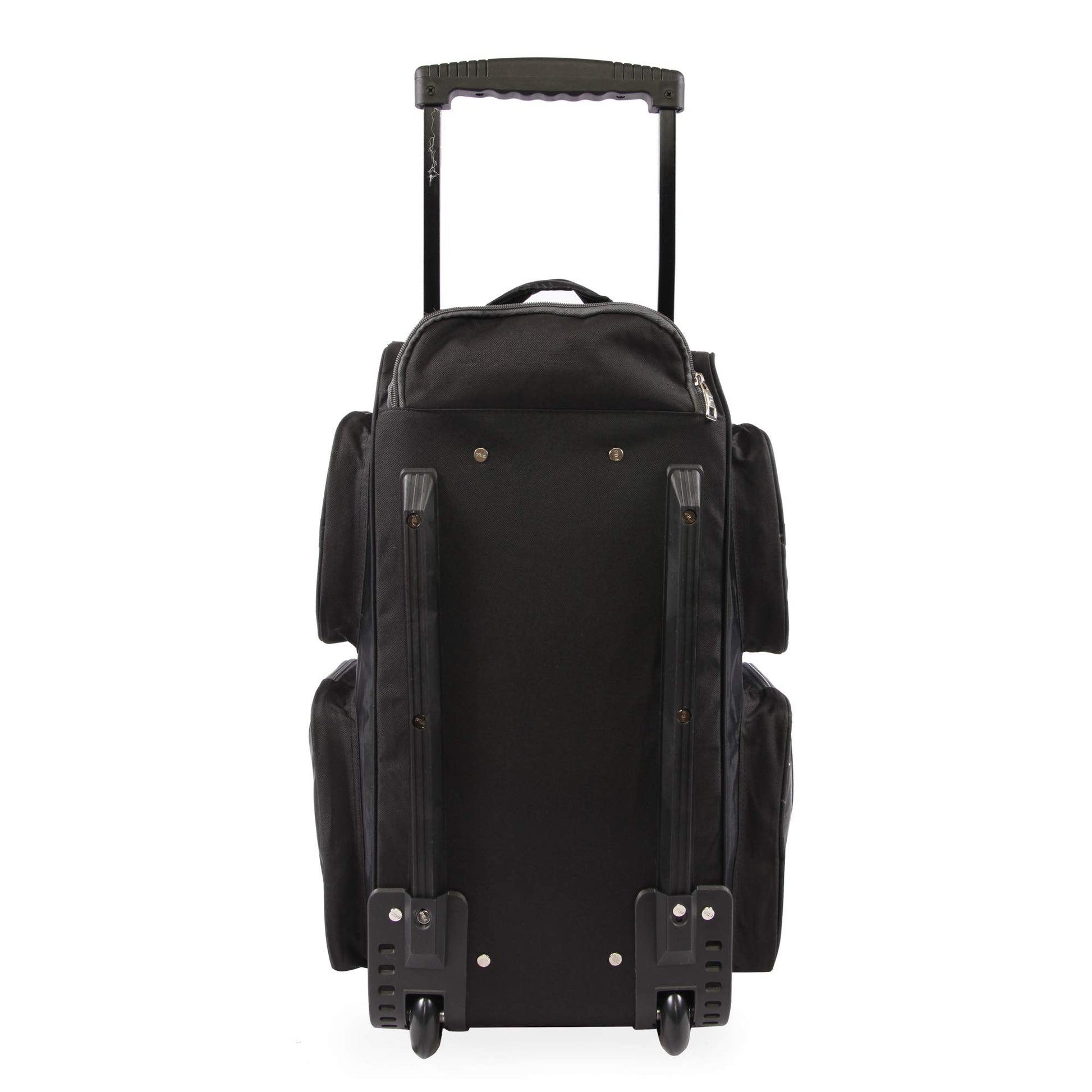 Featuring a sleek black exterior, this duffel bag combines functionality with a modern aesthetic. Its spacious main compartment is designed to accommodate everything from clothing to gear, making it ideal for weekend getaways, gym sessions, or extended trips. The bag is equipped with easy-rolling wheels and a telescoping handle, allowing you to navigate through busy airports and crowded streets with ease.