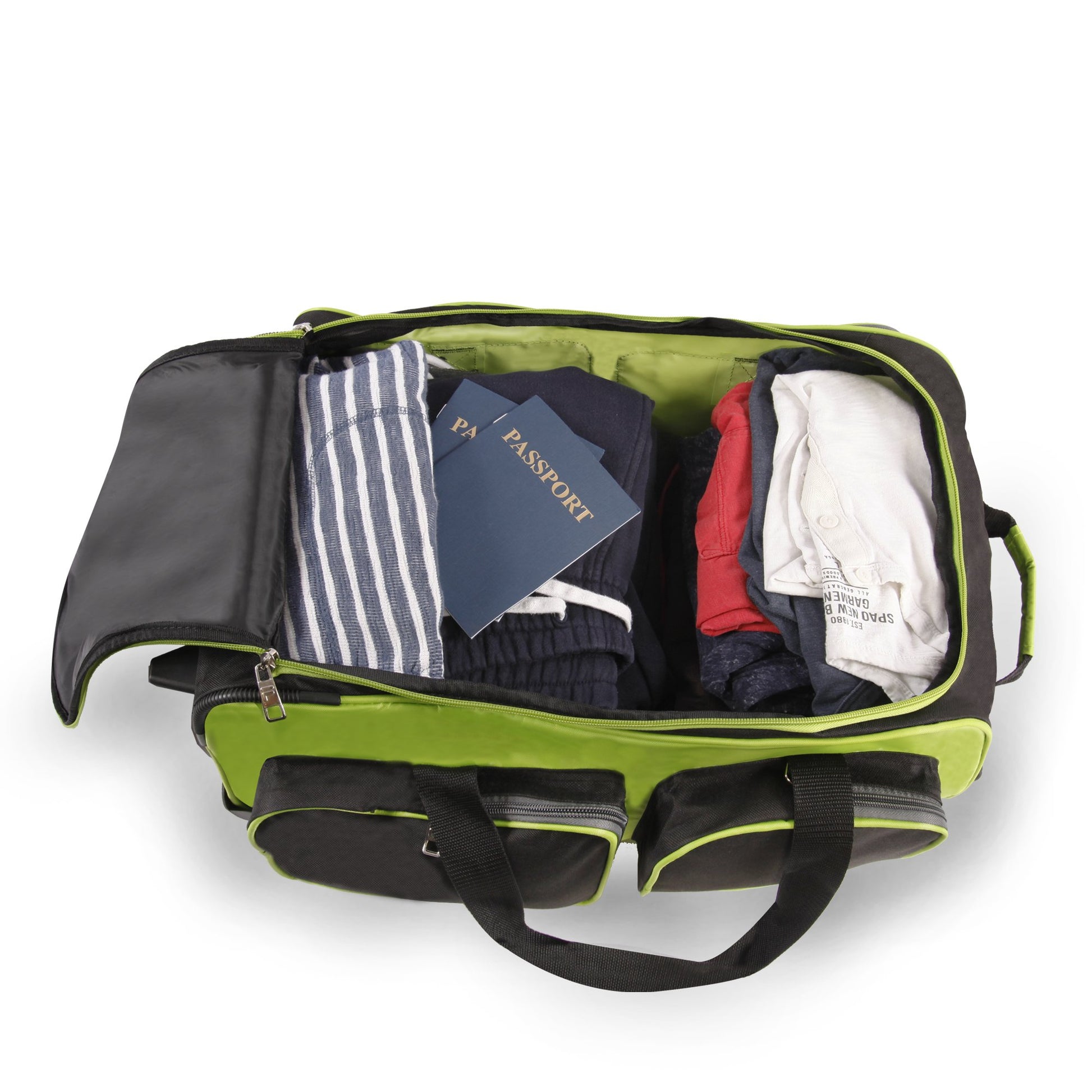 Additional features include multiple carrying options, including sturdy top handles and a detachable shoulder strap for added versatility. The durable fabric resists wear and tear, ensuring that your bag withstands the rigors of travel. With the Fila 22" Lightweight Carry On Rolling Duffel Bag, you can travel smart without sacrificing style.