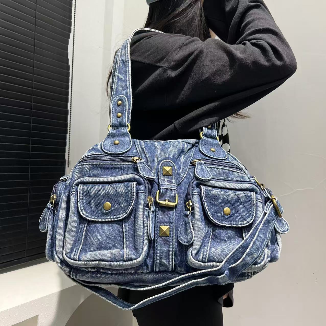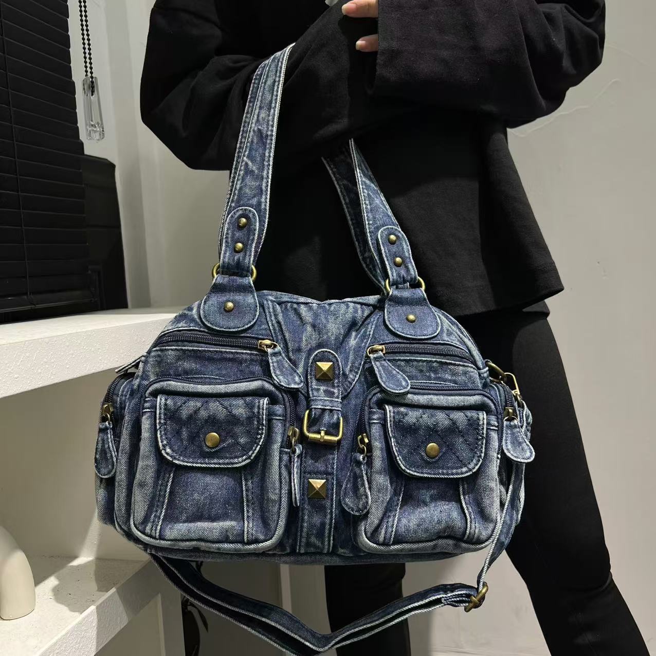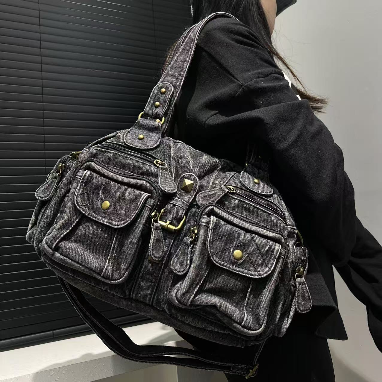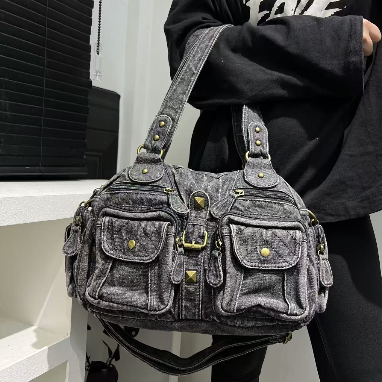 Women's Multi-pocket Distressed Vintage Crossbody Bag